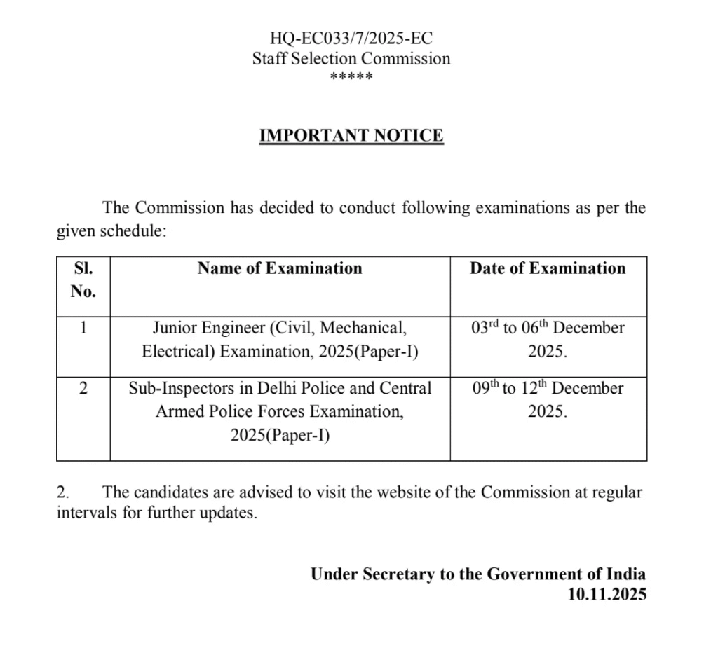 | SSC JE Exam Slot Selection 2025 | 10th to 13th November 2025 | |